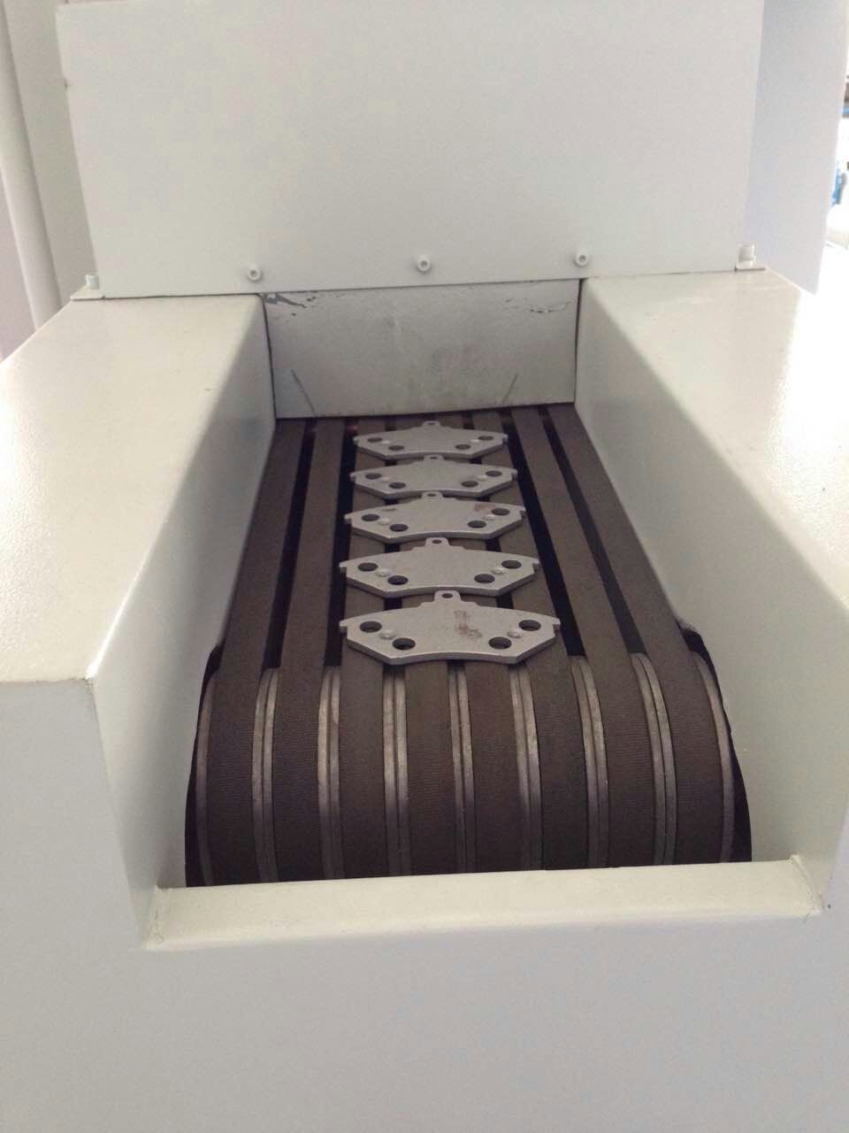 剎車片的生產過程中質量尤為關鍵,其中最重要的一個生產環(huán)節(jié),鐵才與剎車片雛形粘合,粘合前需要通過自動噴砂機,才能有效的粘合。